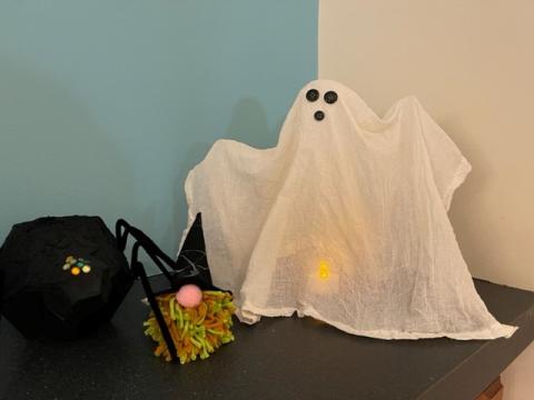 Come learn how to make floating ghosties out of cheesecloth, using starch spray to create an eerie, floating effect! Perfect for the Halloween season and easy decorating.