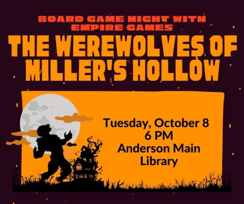 This month, we will be playing The Werewolves of Miller's Hollow! Welcome to the village of Miller's Hollow, where you'll be secretly assigned a role and then be tasked with figuring out who the werewolf is. Be careful, though! Every night, one villager will be killed off by the werewolf, and it's up to you to find the culprit before it's too late!