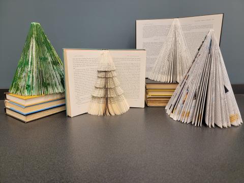 Upcycle an old book to make and decorate an evergreen tree, perfect for winter decorating.