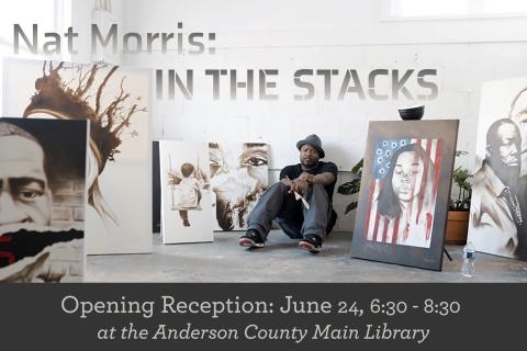 As winner of the Anderson Arts Center's Art Slam held in March, Nat Morris is exhibiting a solo show at the Anderson Main Library. Art lovers and book lovers alike will enjoy this unique show featuring portraits of famous authors.