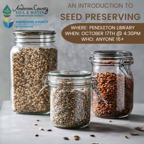 Start preparing for the next growing season now! Learn about seed drying and storing methods to turn this fall's harvest into next year's garden with Ann Marie from the Anderson County Soil and Water Conservation District.