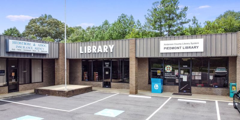 Jennie Erwin Library in Honea Path featuring entrance walkway