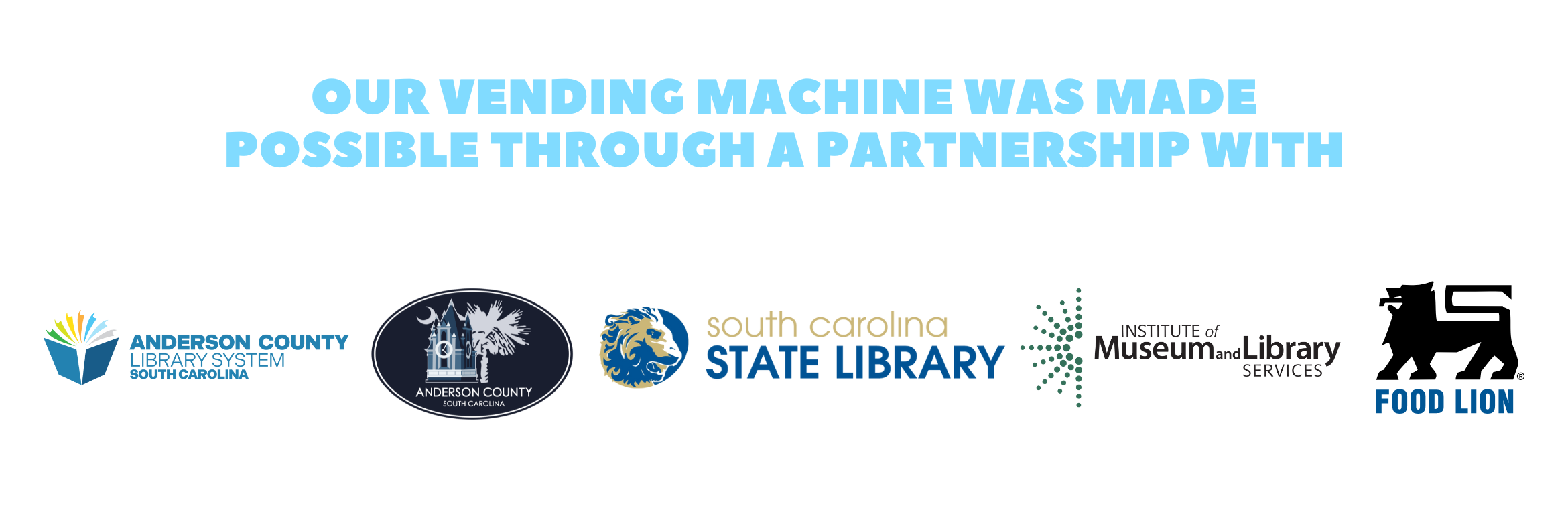 The library vending machine is located inside the Food Lion store at 4403 SC-24, Anderson SC 29626. It is available for use during Food Lion's open hours.